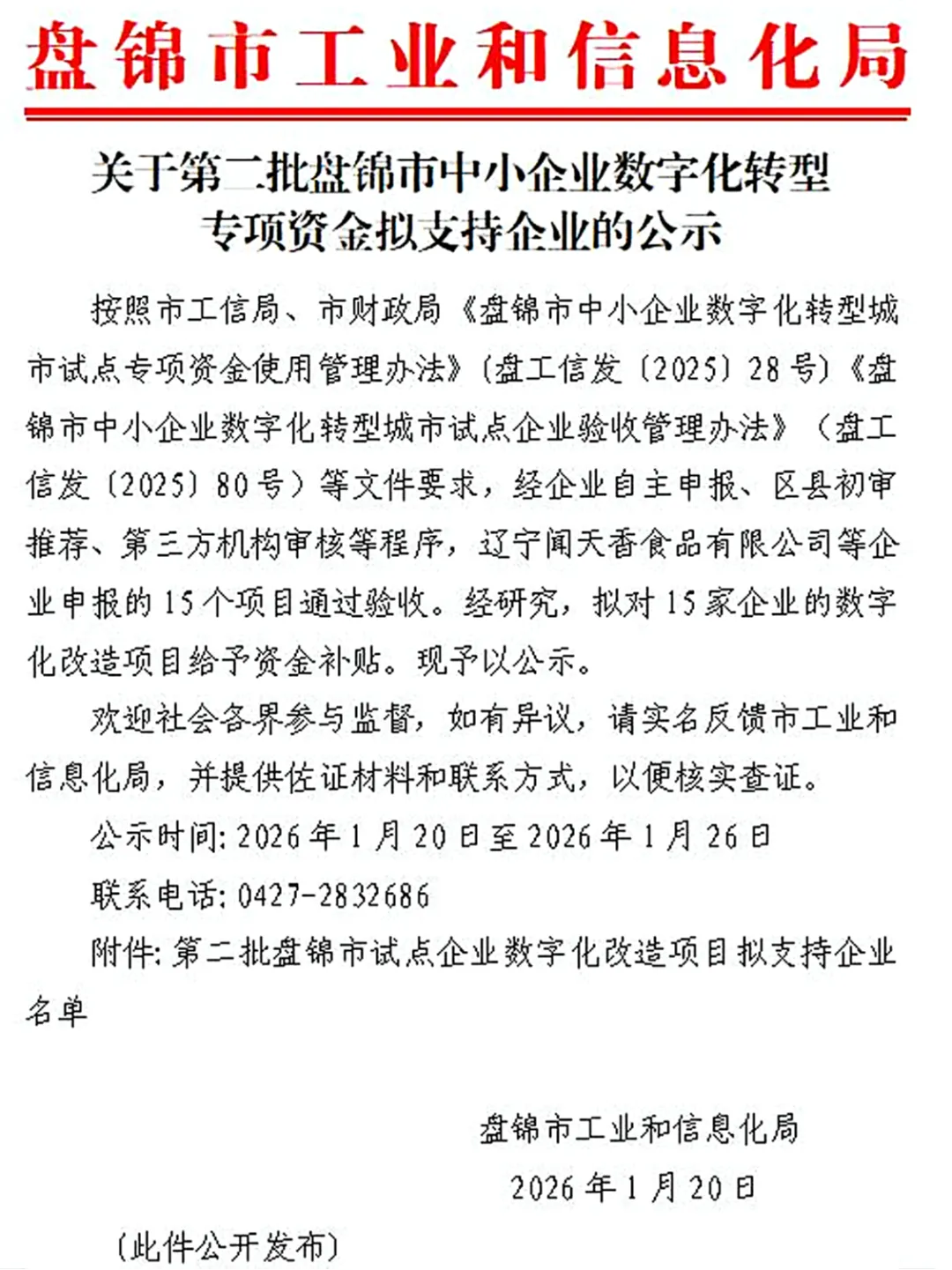 公司项目负责人表示,衷心感谢盘锦市政府及相关主管部门的信任与支持。近年来,盘锦市通过出台专项政策、搭建服务平台、强化资金扶持等举措,为中小企业数字化转型保驾护航。未来,盘锦中录将以此次殊荣为契机,聚焦于生产服务过程的数字化管控与服务模式的创新升级,持续深化产业数字融合,力争打造成为本地区、本行业中小企业数字化转型的标杆案例,为公司高质量发展及地方经济繁荣贡献更大力量。