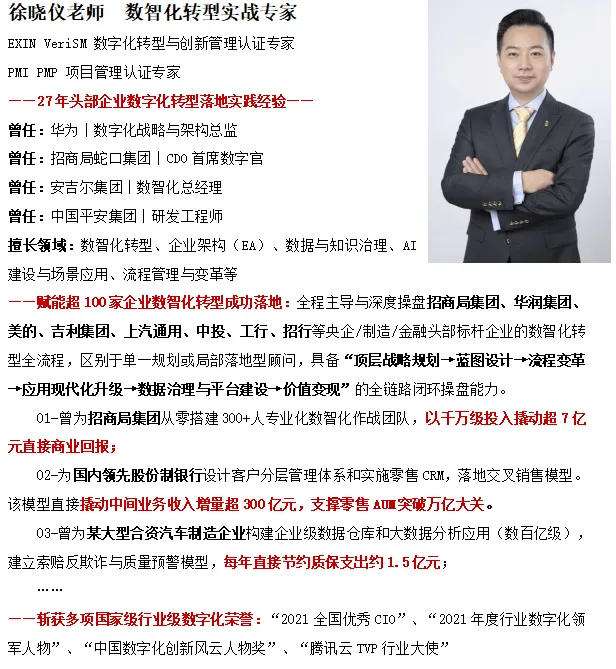 课程对象:企业董事长/CEO、CIO/CDO、数字化转型办负责人、战略及核心业务部门高管