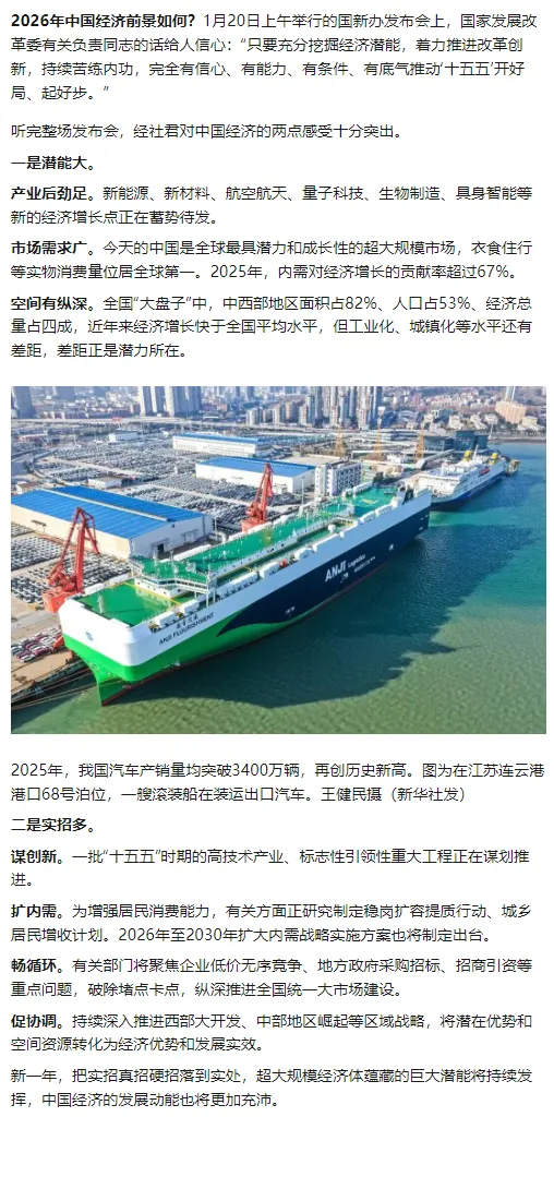 【每日一学】2026中国经济前景如何?这两点很突出!