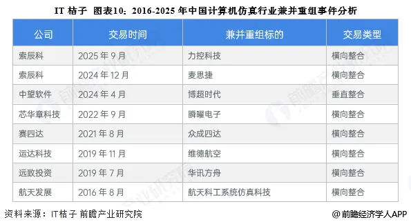 由于国内计算机仿真行业尚处于初级发展阶段,国内的企业规模普遍偏小,且以代理为主,因此同业间发生兼并的事件较少,目前兼并重组的类型主要为中游企业横向整合扩大规模。