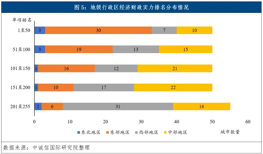 (三)从分项排名看,东部地区多项指标优于其他区域,经济财政实力是关键影响因素