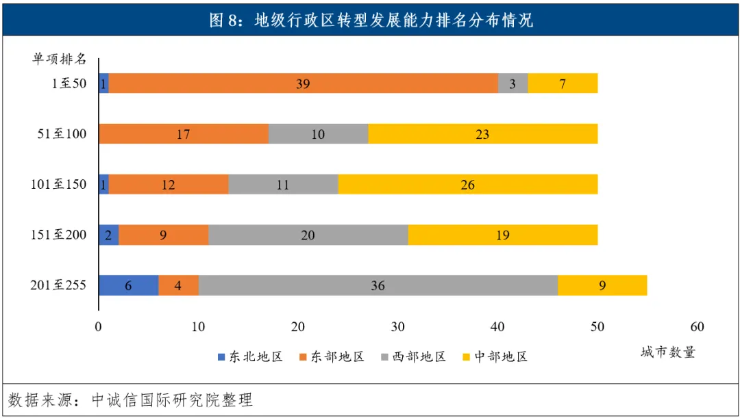 (二)从综合排名看,东部地区优于其他地区,退出重点省份地市排名未见明显改善