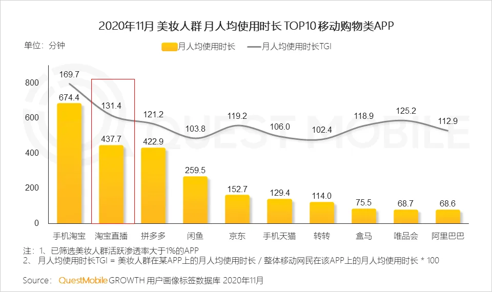 5、直播电商融合了“产品导购+下单购买”的功能,缩短了消费者的购买决策链路,美妆人群对淘宝直播APP的使用时长仅次于手机淘宝
