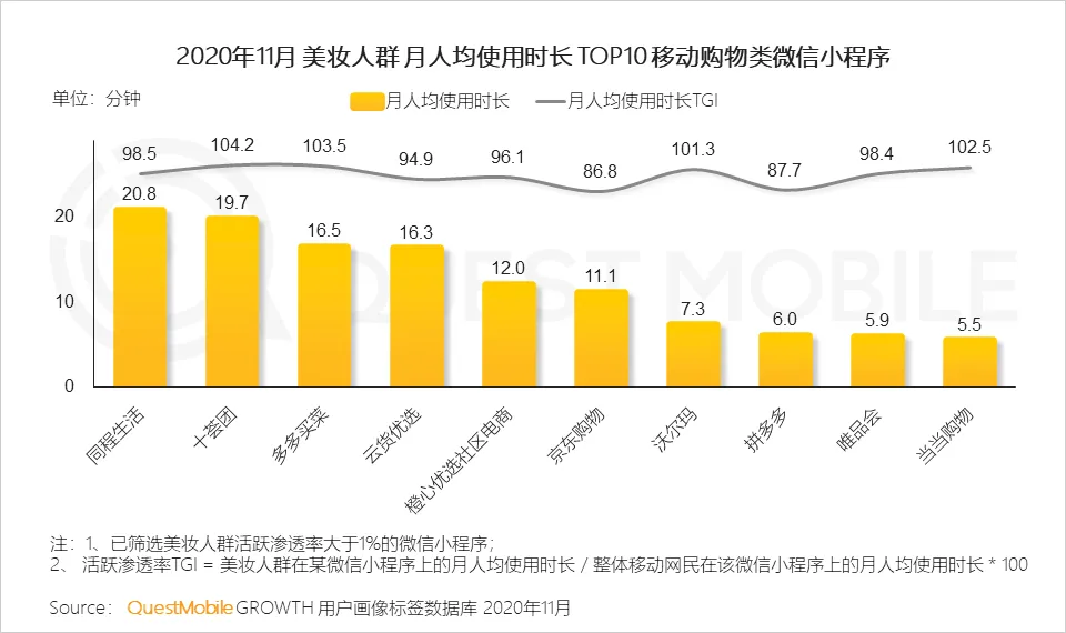 6、在小程序端,美妆人群主要在社区电商、生鲜电商的偏好显著,显示出美妆爱好者也是精明的生活家