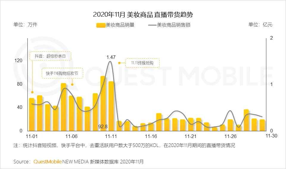 11月“双十一”“黑五”购物节轮番登场,美妆品牌深入洞察美妆用户特征,通过KOL内容营销及直播电商提升品牌的声量与销量