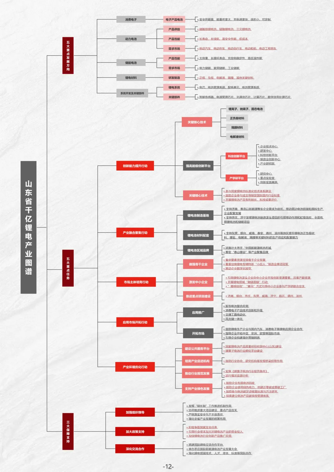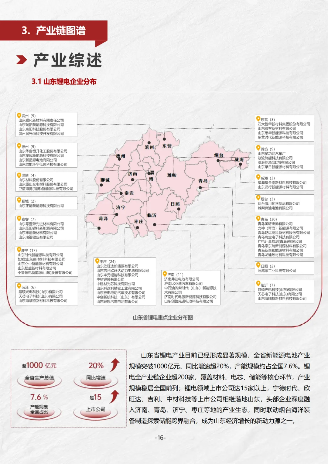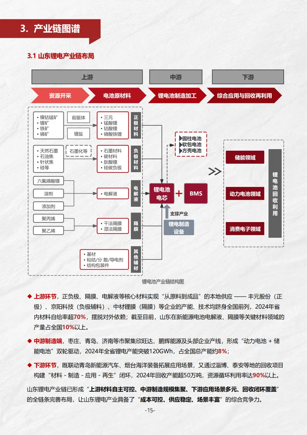同时,产业仍面临高端材料自给不足、上游原料保障偏弱、本土龙头影响力有限、区域协同有待加强等挑战。未来 3-5 年,山东锂电产业将保持 30% 以上年均增速,冲刺 2028 年 5000 亿元产值目标,推动技术向高端化升级,拓展多元应用场景与海外市场。为实现高质量发展,需强化省内产业链内循环、加大优质企业招引、推进新型储能项目建设、优化电价政策及加大技术创新支持力度。