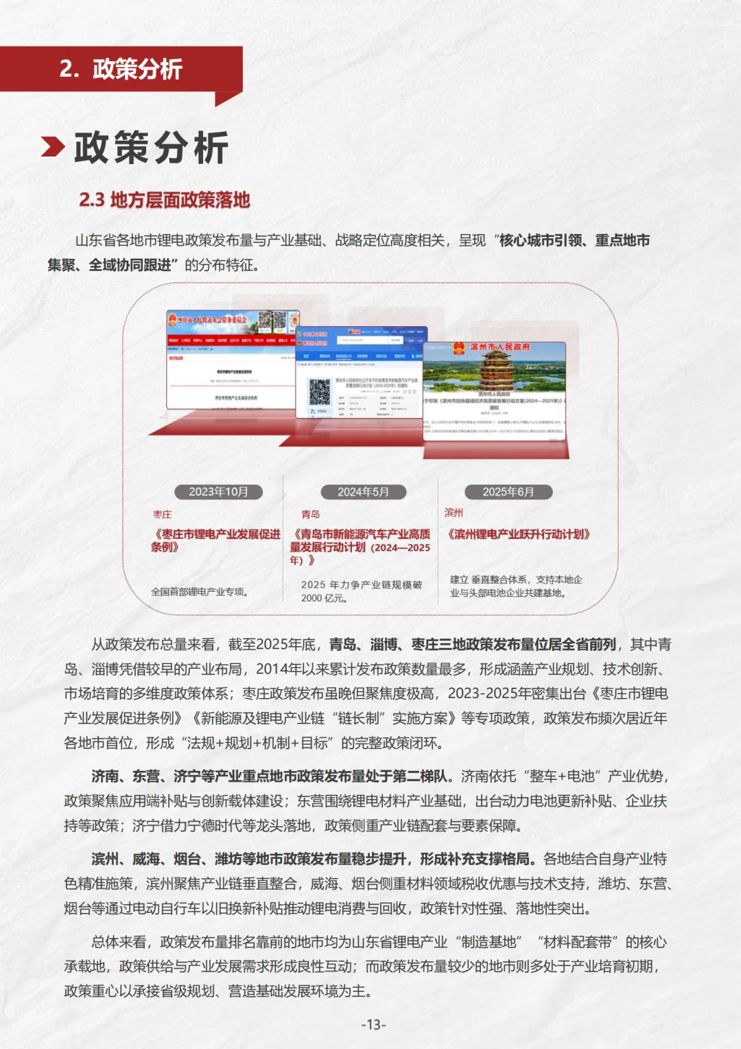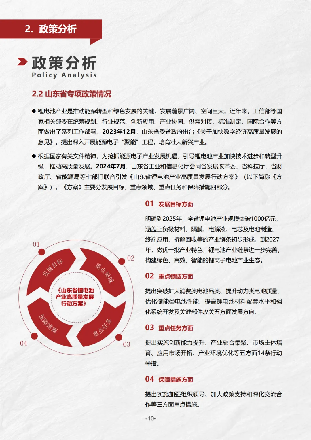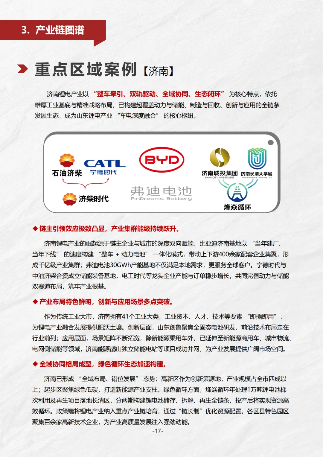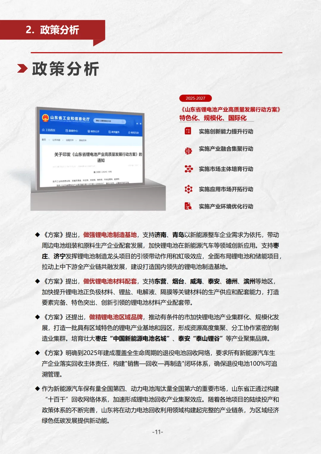 同时,产业仍面临高端材料自给不足、上游原料保障偏弱、本土龙头影响力有限、区域协同有待加强等挑战。未来 3-5 年,山东锂电产业将保持 30% 以上年均增速,冲刺 2028 年 5000 亿元产值目标,推动技术向高端化升级,拓展多元应用场景与海外市场。为实现高质量发展,需强化省内产业链内循环、加大优质企业招引、推进新型储能项目建设、优化电价政策及加大技术创新支持力度。