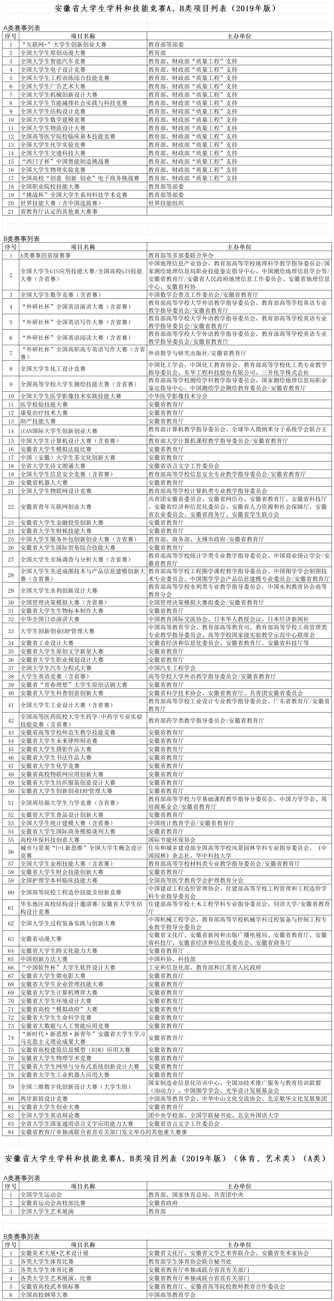 安徽省大学生学科和技能竞赛A、B类项目列表