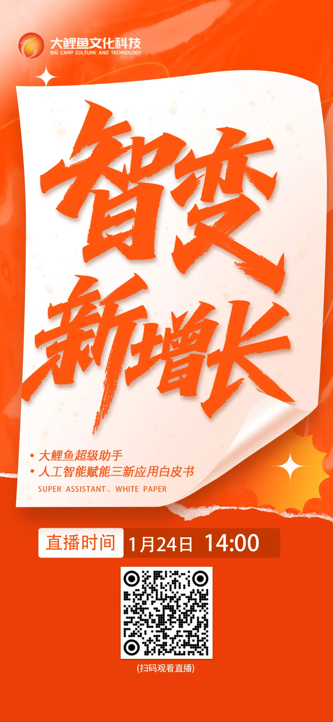 无论你是想紧跟AI趋势的从业者,还是寻求效率突破的创业者、职场人,这场直播都能给你答案。扫码下方海报二维码预约直播,告别AI落地迷茫,在白皮书的理论指引与大鲤鱼AI产品的实践案例中,解锁AI赋能的全新可能。