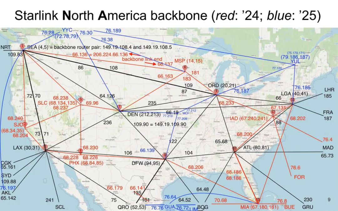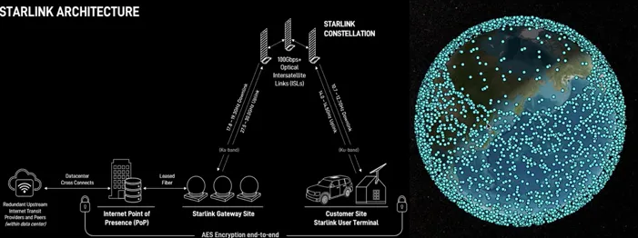 Starlink目前在轨卫星数量超过9000颗,用户数量已经突破900万,已构建起一个由用户终端、卫星、信关站组成的大规模加密网络,此网络融合了星间链路、地面接入点和全球骨干网,旨在优化全球连接。