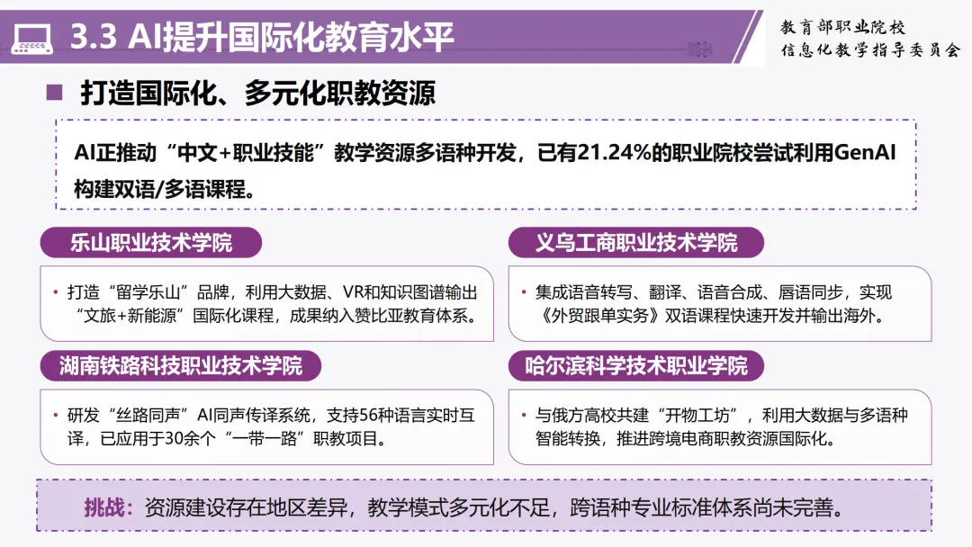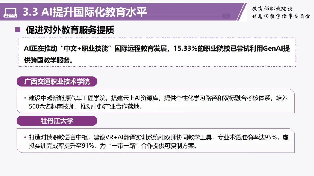 这份报告不仅为政策制定者提供了决策参考,也为广大职业院校指明了推进AI应用的实践路径。