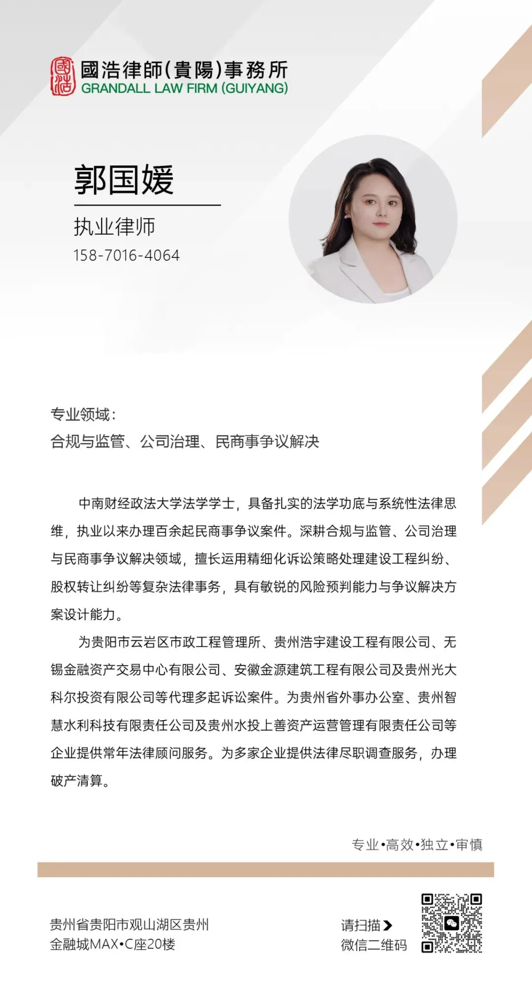 本公众号由国浩律师(贵阳)事务所沈双双团队运营,该团队常年深耕于婚家财富传承、公司治理、民商事争议解决等领域,具有10年以上的执业经历,为上百家企业和数百名当事人提供过法律服务,拥有大量的实践经验和成功案例。