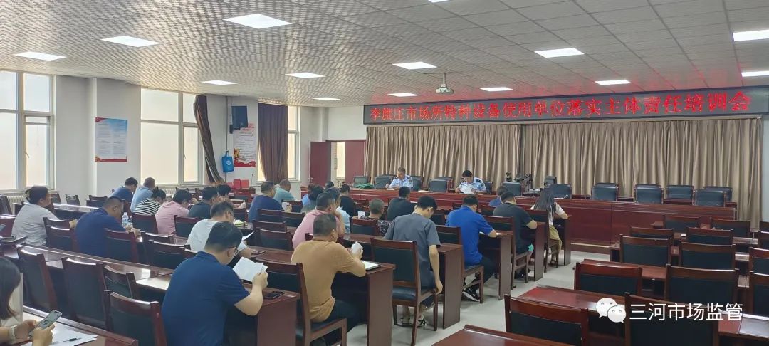为进一步压实辖区企业安全生产主体责任,保障特种设备使用单位设备及人员安全,8月17日,三河市市场监督管理局李旗庄所召开特种设备使用单位落实主体责任培训会,组织辖区47家特种设备使用单位的特种设备安全负责人进行集中学习。