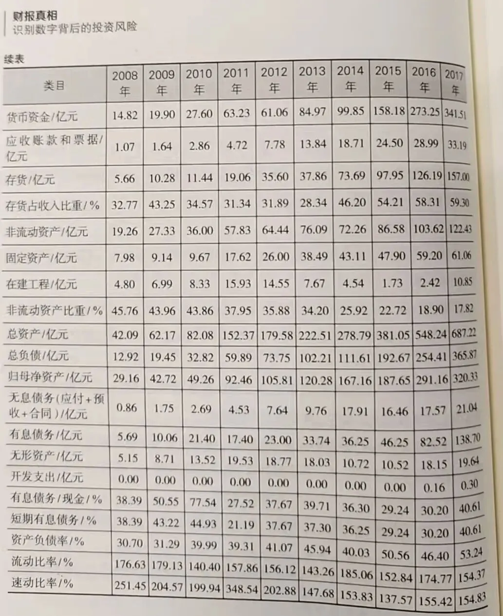 我们观察康某药业的资产负债表数据(见表3-10),有以下几个发现: