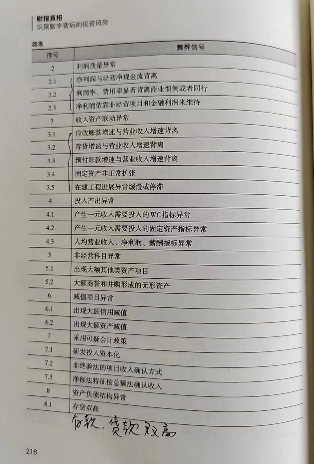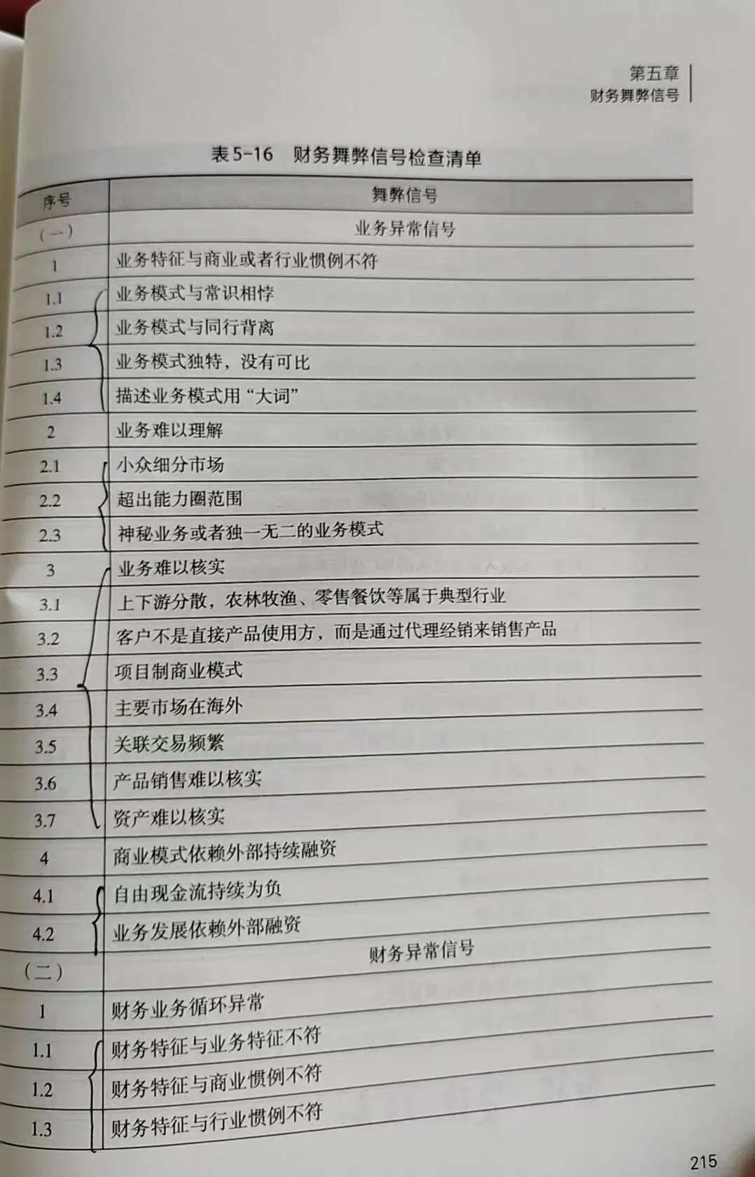 我们来看一下书中列示的“舞弊信号检查清单”。