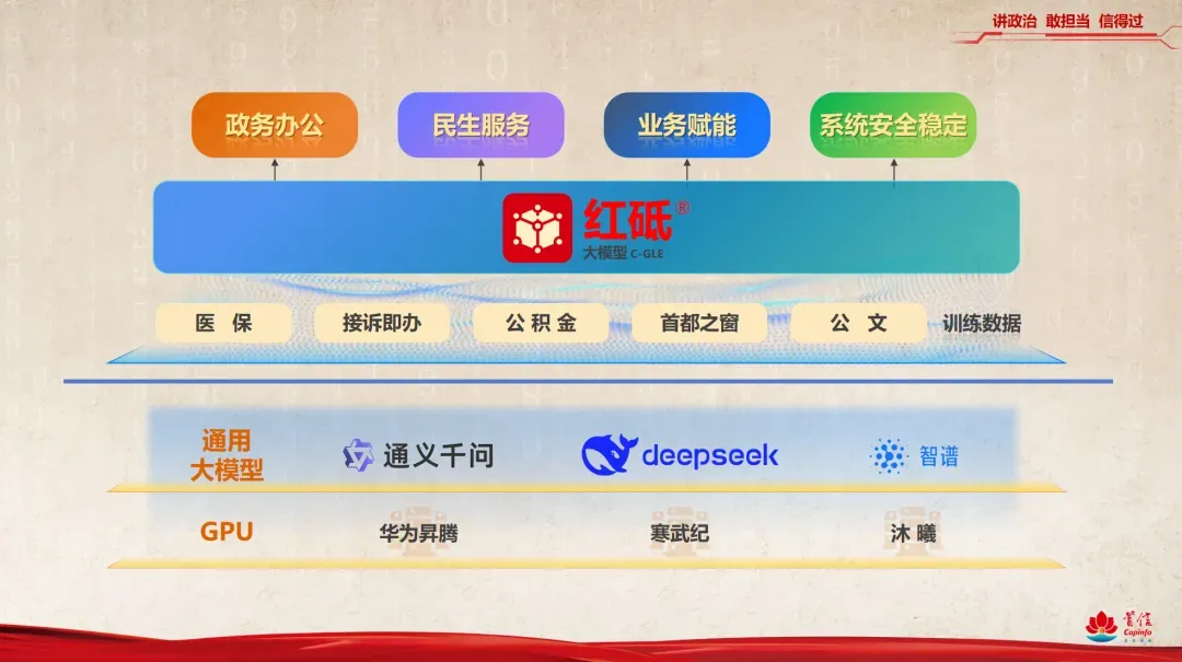旗下首都信息公司自主研发的“红砥®大模型”和“红顺™行业产品”,深度融合医保、公积金、接诉即办等业务场景,提升政务服务智能化水平,持续支持北京市各区政务服务“一网通办”建设,已为北京市43个街道(乡镇)政务服务中心提供标准化建设服务。