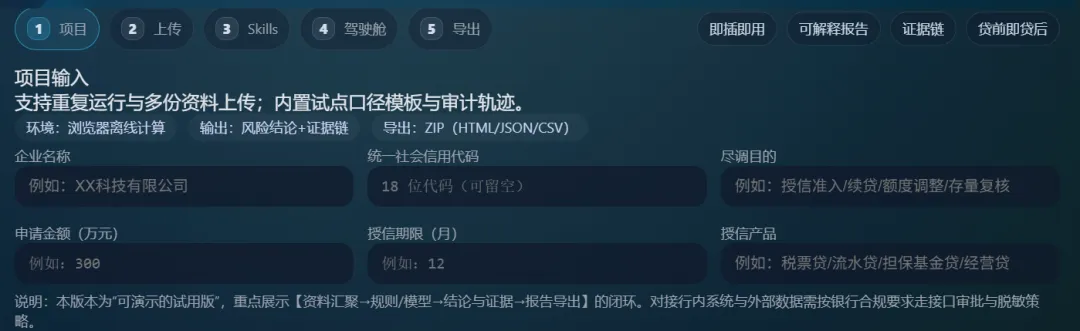 可执行:输出 Top 风险驱动 + 下一步动作(补件/核验/额度与定价调整/担保建议)。