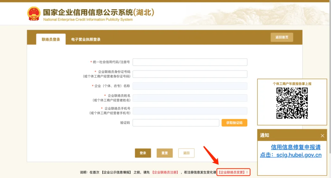 或者直接打开国家企业信用信息公示系统(湖北)(https://scjg.hubei.gov.cn/hbgsxt/)登录后逐项如实填报。