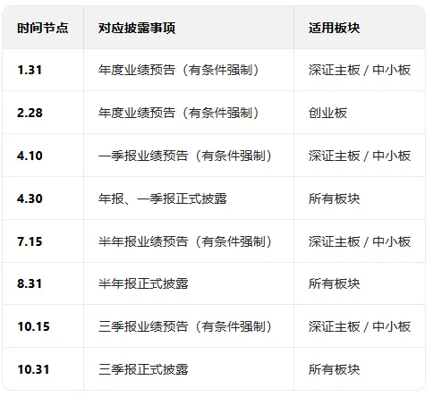 (1)深证主板/中小板:有条件强制披露(触发条件同年报),需在10月15日前披露