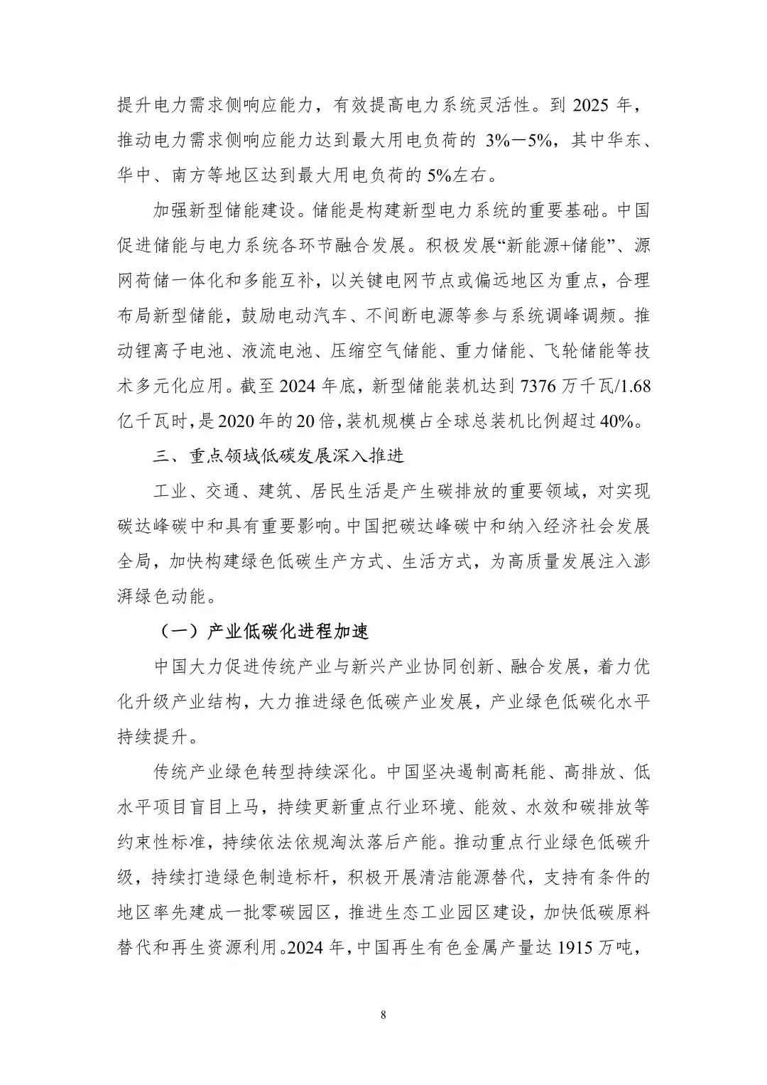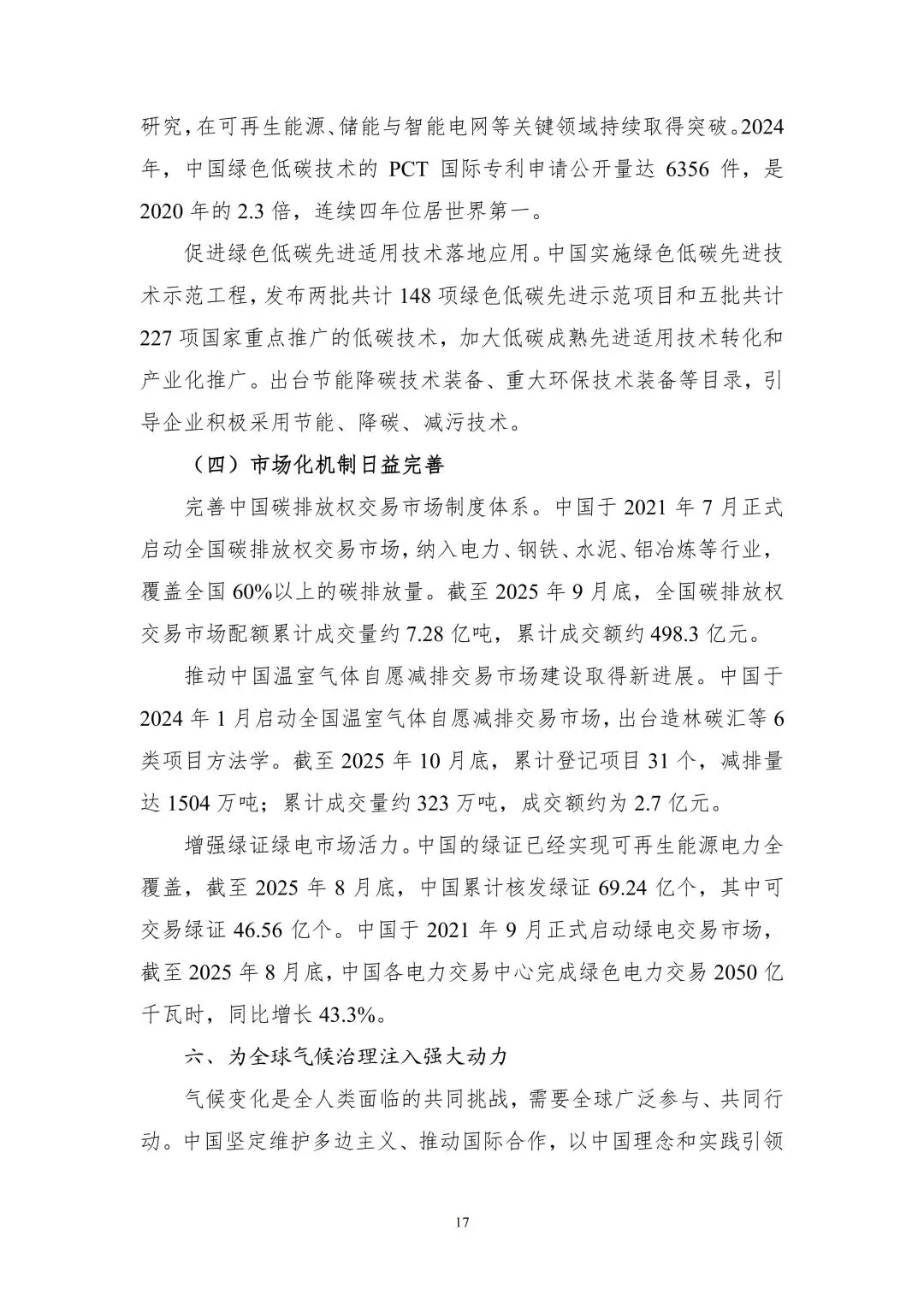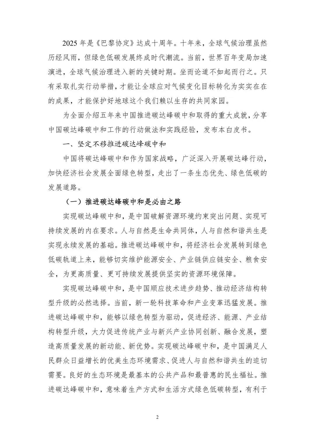 国务院新闻办公室于2025年11月发布了《碳达峰碳中和的中国行动》白皮书。这份白皮书系统总结了中国双碳重大宣示五年来的历史性成就与实践路径,六大核心板块清晰擘画了我国绿色低碳发展的全景蓝图。