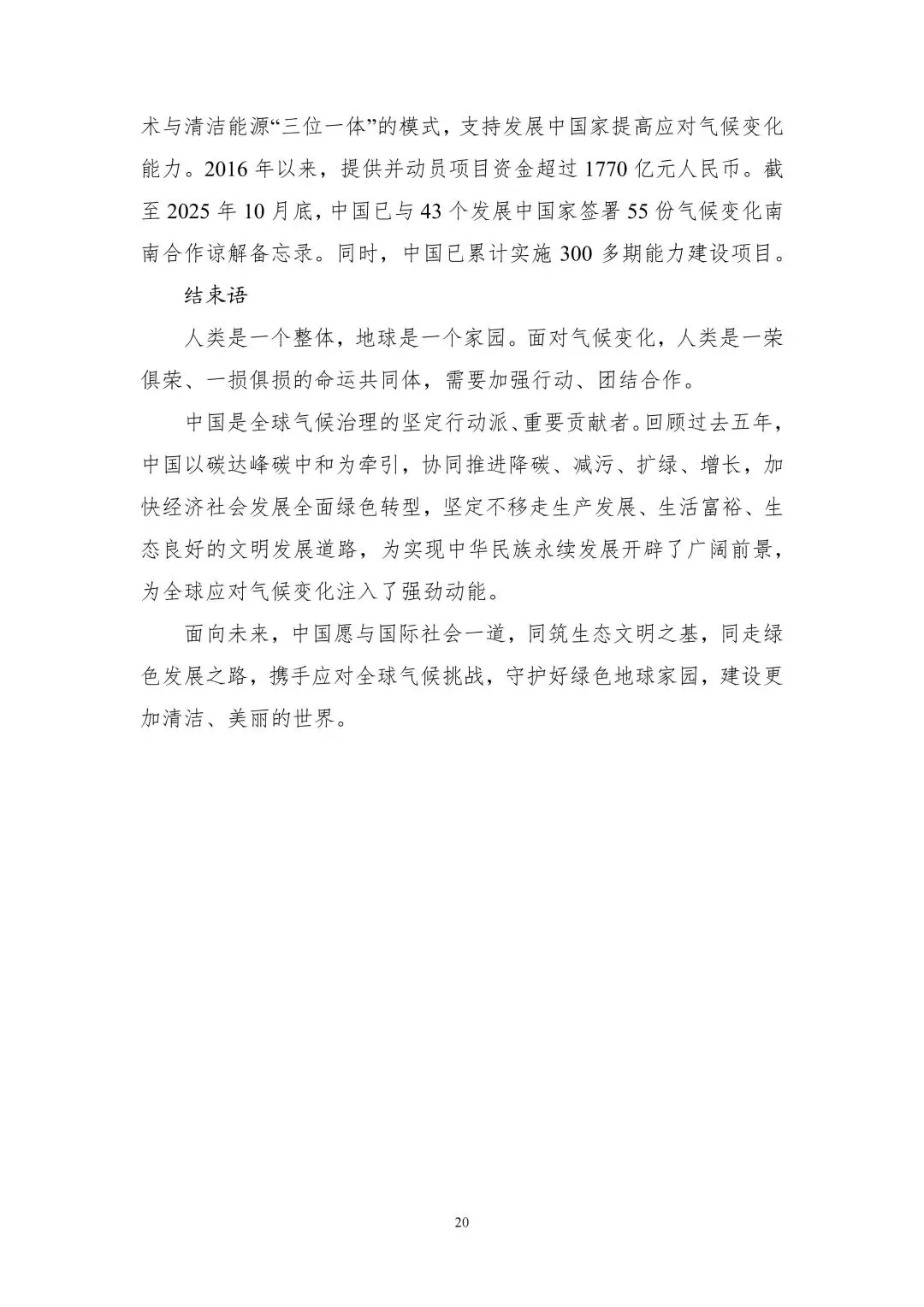 白皮书强调,气候变化是全人类面临的共同挑战,需要全球广泛参与、共同行动。中国坚定维护多边主义、推动国际合作,以中国理念和实践引领全球气候治理新格局。面向未来,中国愿与国际社会一道,同筑生态文明之基,同走绿色发展之路,携手应对全球气候挑战,守护好绿色地球家园,建设更加清洁、美丽的世界。
