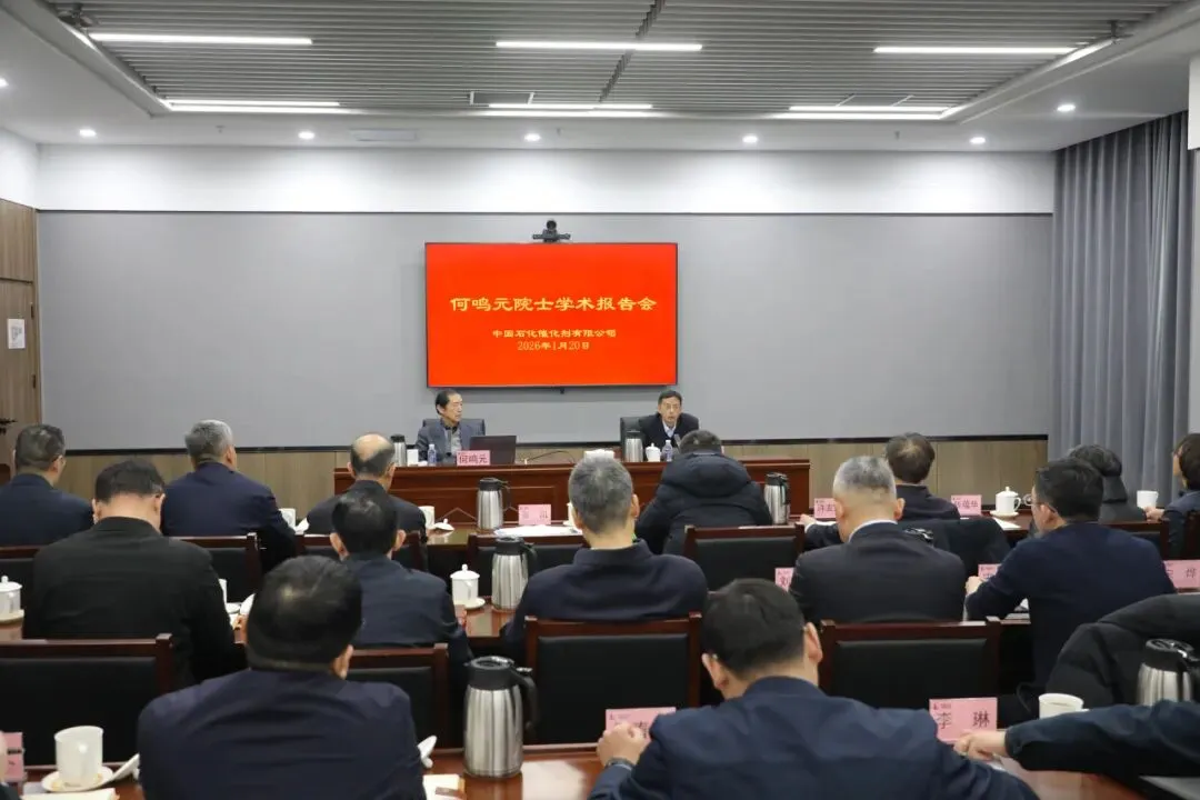 1月20日,中国科学院院士何鸣元应邀莅临催化剂公司作“催化裂化催化剂回顾与展望”学术报告。华东师范大学教授钱蕴华,中石化石油化工科学研究院有限公司副总经理林伟,中国石化首席科学家许友好,石油化工分子转化与反应工程全国重点实验室办公室主任陈蓓艳、中石化石油化工科学研究院有限公司十四室主任宋海涛、副主任宋烨、二十二室副主任邢恩惠一同参加学术交流研讨。公司副总经理张凯主持并致欢迎词,集团公司高级专家、公司首席专家、董事会秘书、副总师、机关相关部门及工程技术研究院负责人和技术人员共计90余人参加报告交流。