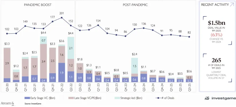 随着估值崩塌,风险资本对游戏行业的投资也随之锐减。