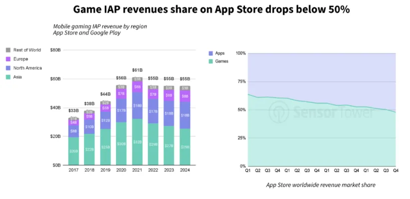 近十年来首次,App Store的应用收入反超游戏,成为营收主力军,且这一趋势仍在持续加速。