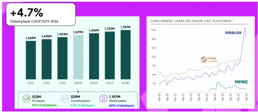 游戏产业正处在一个转折点。主机平台将迎来《GTA 6》级别的强劲助推,PC端凭借Steam稳步增长,Roblox通过触达全新用户群体达到新高度,而移动游戏则在安装量下滑的困境中以日益强化的 monetization 策略奋力应对。