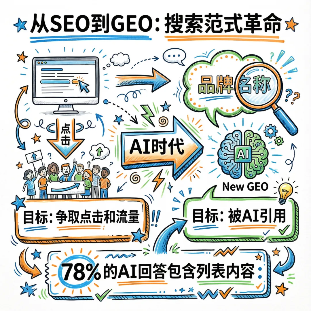 这就是生成引擎优化(GEO)的时代——一个品牌不再追求"被点击",而是追求"被引用"的新纪元。