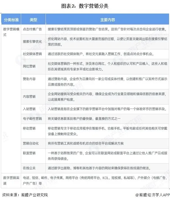 2、 数字营销行业分类