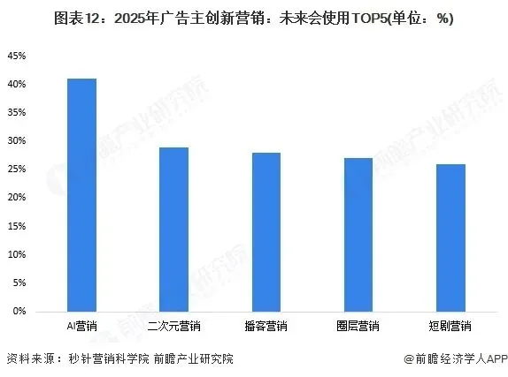 当前,营销模式创新是行业发展的热点话题。根据秒针营销科学院的数据,AI营销成为2025年广告主创新营销中最为关注的创新模式,AIGC技术的进一步成熟有望进一步推动AI营销模式的加速渗透。