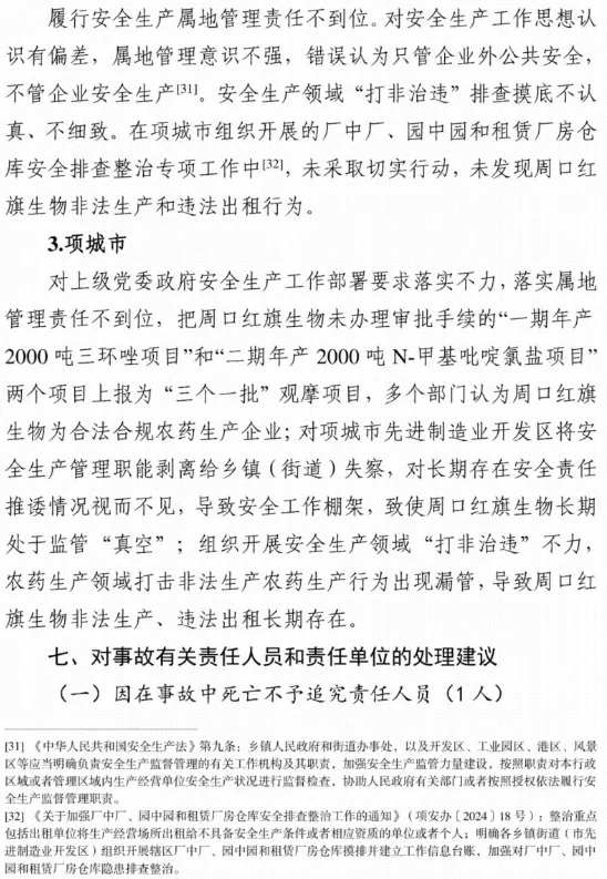 调查认定,该起爆炸事故是一起因企业违法出租、非法生产,地方党委政府及其相关部门和单位履职不到位导致的生产安全责任事故。
