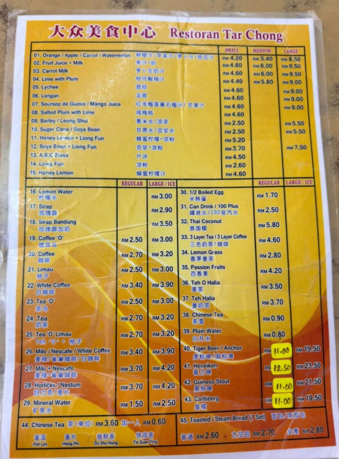 青岛啤酒(瓶装):16-21马币/瓶