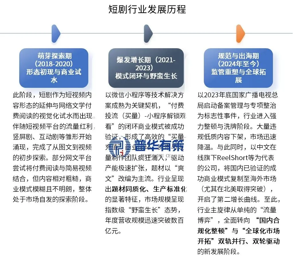 北京普华有策信息咨询有限公司《“十五五”短剧产业深度研究及趋势前景预判报告》对短剧行业进行了全景式深度剖析。构建了短剧行业的全景分析框架。报告开篇明义,以国家广电总局官方定义为准绳,厘清了“网络微短剧”的范畴与特征,并系统梳理了其从萌芽、爆发到规范出海的三阶段演进历程。报告核心聚焦于“投流驱动”的工业化产业链,剖析了上下游的价值分配与相互制约关系;揭示了由平台巨头、专业上市公司及中小工作室构成的、且在2026年新规下加速分化的竞争格局。报告深入阐述了由用户需求、技术革命(尤其是AIGC)、资本逻辑及“鼓励消费”与“强化监管”并行的政策共同构成的多元驱动模型。最终,报告研判了行业向精品化、智能化、全球化发展的必然趋势,并详细拆解了资金、数据、生态与合规构成的复合型壁垒,为市场参与者提供战略地图。