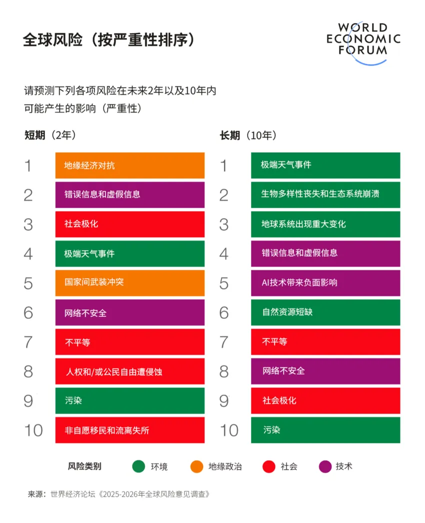 摘要:当全球的短期注意力被地缘对抗与虚假信息争夺,人类最根本的生存性威胁——环境危机,正面临被政策议程‘降级’的危险。世界经济论坛最新报告揭示了这一令人警醒的‘时间悖论’。”