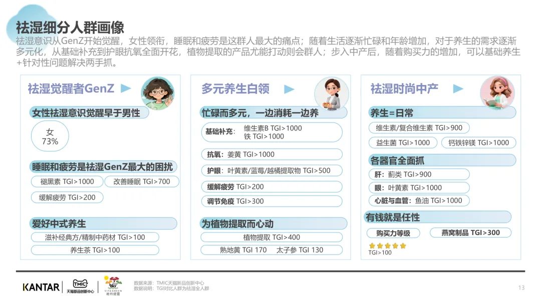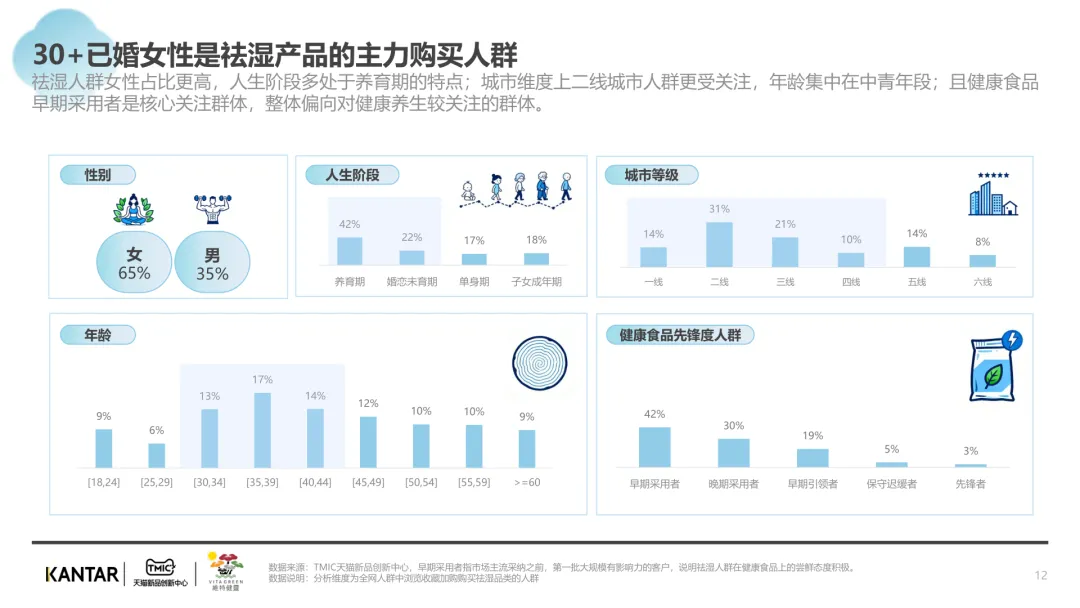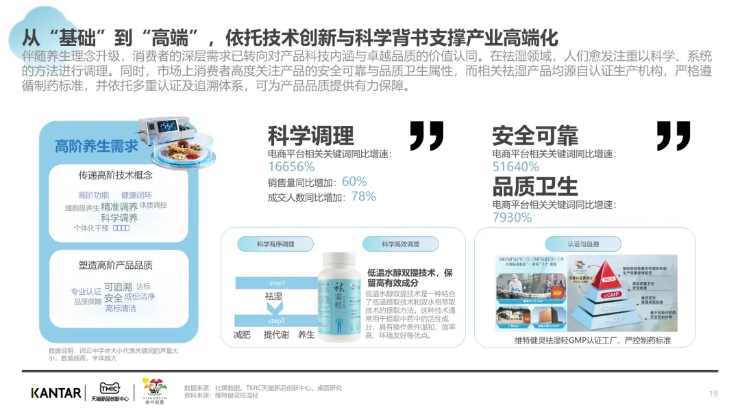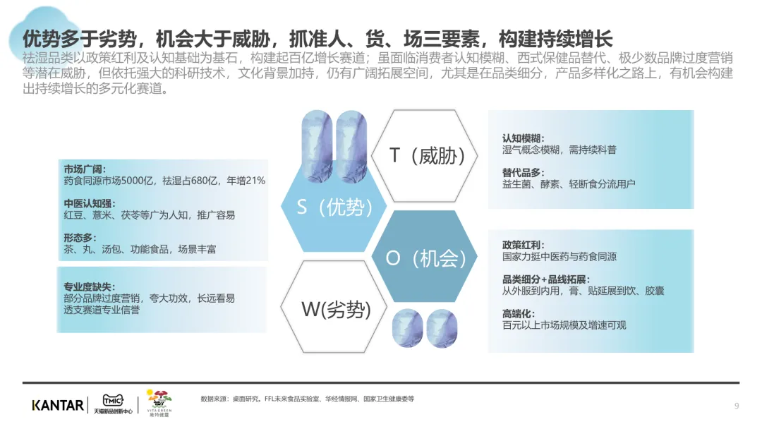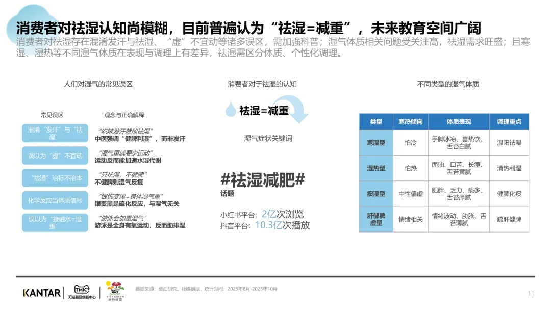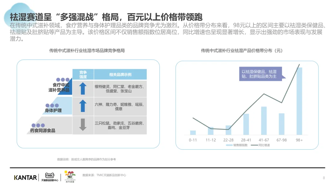 导读:报告聚焦祛湿赛道发展现状与趋势,在政策支持、传统文化传承及健康需求增长的三重驱动下,祛湿赛道成为中式滋补核心增长点,市场规模达 680 亿元,年增速超 20%。赛道呈现强季节性特征,春后回南潮湿与夏季三伏天形成需求高峰。区域上南方主导市场,长三角、珠三角城市群贡献 65% 销售额,北方高湿天气推动需求崛起。产品形态覆盖食补、个护等多元品类,百元以上价格带增速显著,维特健灵等品牌凭借科研实力领跑市场。核心消费群体以 30 + 已婚女性为主,Z 世代祛湿意识觉醒,睡眠与疲劳问题是主要痛点。行业正经历全方位升级,从单一成分转向草本复配,从慢养转向便捷速效,从外用转向内服主导,从基础产品走向高端化、科学化。未来,成分创新、场景拓展与科学背书将成为赛道竞争核心。