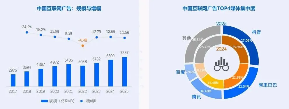 据《2026 中国数字营销趋势报告》显示,中国数字广告市场规模已突破7000 亿元大关。在这个庞大的数字背后,是短视频与电商广告合计占据近60%份额的绝对统治力。