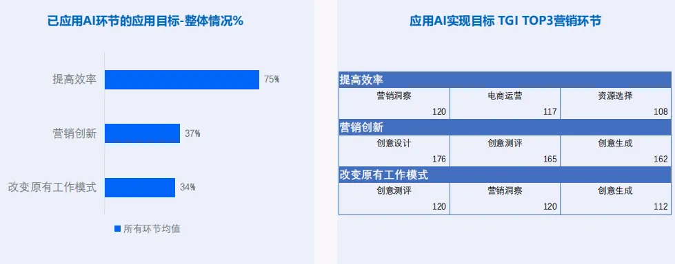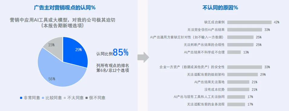 报告显示,85%的广告主认为“营销中应用 AI 对公司极其迫切”。这种紧迫感来自 AI 角色的根本性转变: