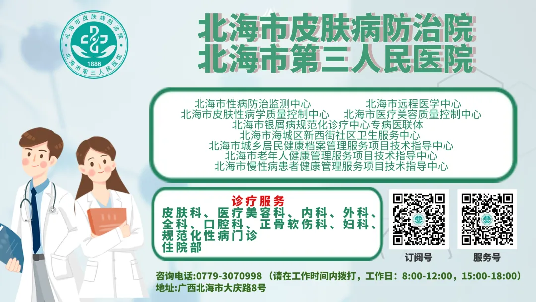 地址:北海市海城区大庆路8号北海市皮肤病防治院办公室