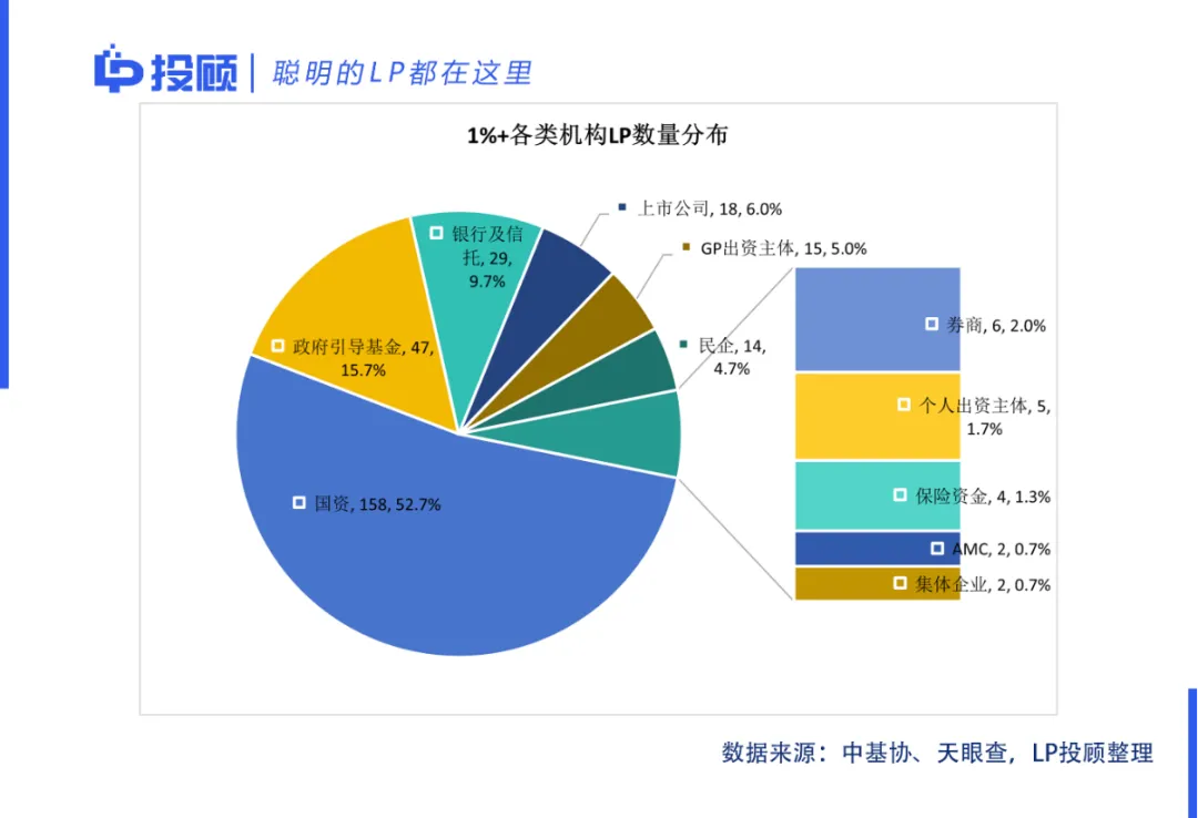 从LP的数量分布来看,国资(主要指地方国有企业及投资平台)是AIC基金的LP中最为庞大的群体。数据显示,国资类LP数量近160家,占据了半壁江山。