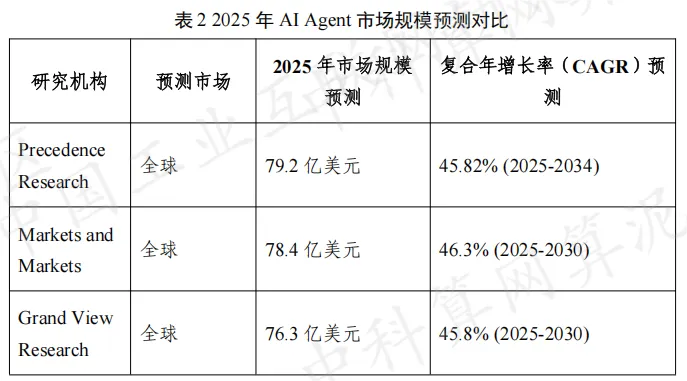AI Agent已从一个前沿技术概念,迅速演变为结构清晰、生态活跃的千亿级新兴产业。2025年,这一赛道吸引从底层芯片制造商到上层应用开发者的全链条参与者,呈现出“百家争鸣”的繁荣格局。全球及中国AI Agent市场均展现出强劲增长势头,多家中外权威机构报告共同勾勒出一幅高速扩张的产业蓝图。