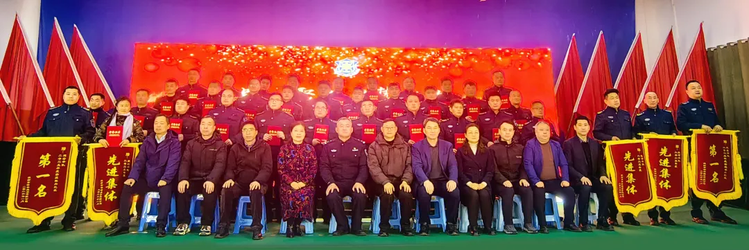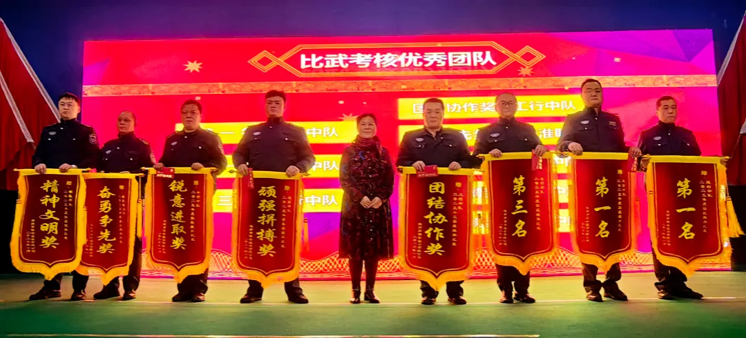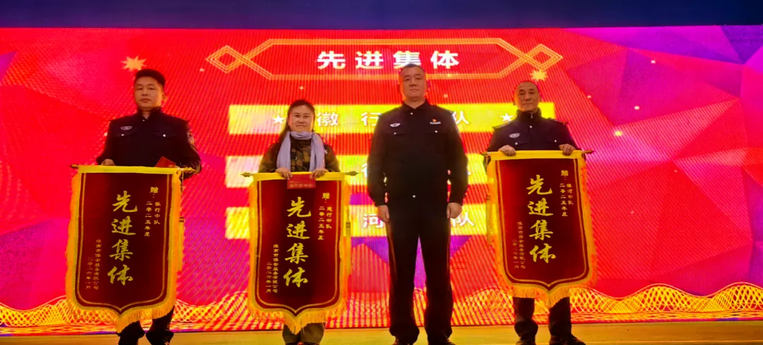 大会进入表彰环节,公司对2025年度表现突出的先进集体与个人进行隆重表彰:32名员工荣获“先进个人”称号;李绪坤、童永群、张玉林等7名管理者获评“先进管理者”;徽行中队、建行中队、淮河中队被授予“先进集体”称号;实战练兵比武考核中,建行中队、凤台中队获并列第一名,农行中队获第三名,多个中队斩获团结协作奖、奋勇争先奖等荣誉。