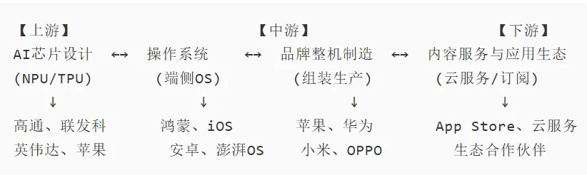 AI+电子产品产业链呈现"上游技术密集、中游品牌集中、下游服务延伸"的格局: