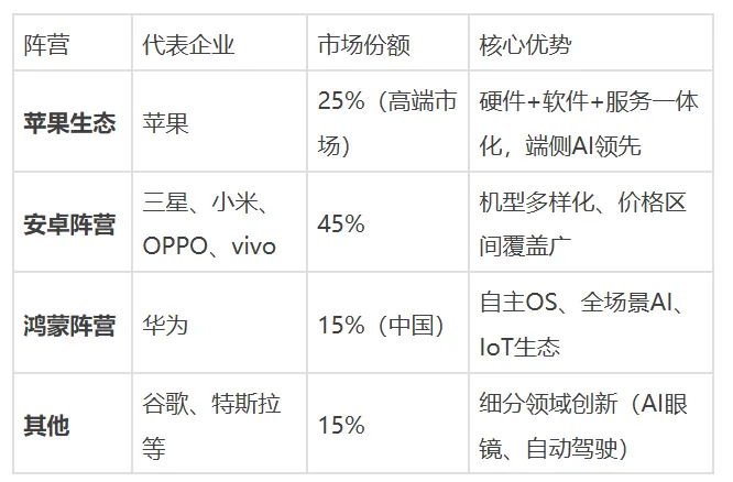 3.生态化竞争成主流:苹果、华为、小米等巨头构建"硬件+软件+AI服务"全生态