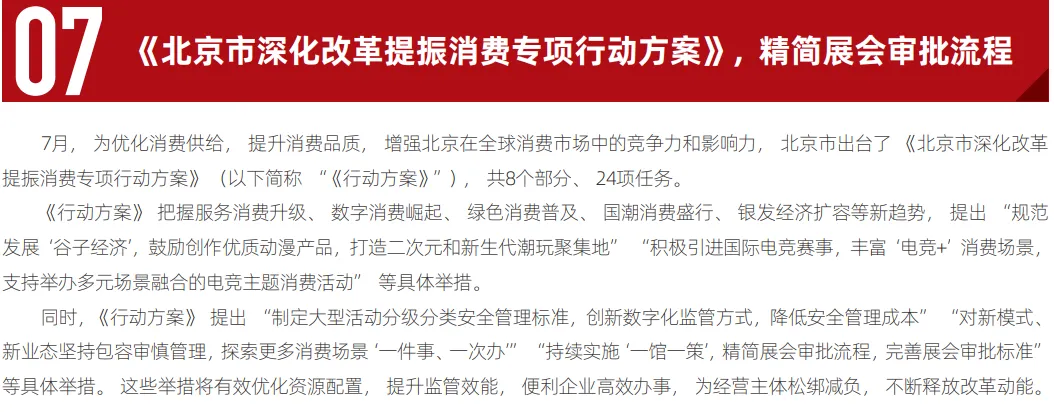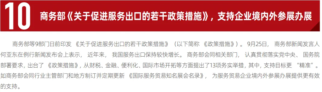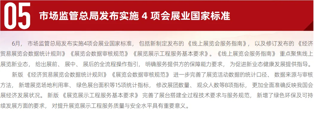 这十项政策举措不仅有效破解了制约行业发展的制度性瓶颈,更推动会展业从单纯追求规模扩张转向注重质量提升,加速构建“展会引领、产业协同、全球互联”的良性发展生态。通过这一系列改革,会展业在服务国家对外开放战略、激发内需市场活力、推动产业转型升级等方面发挥了更为显著的价值。