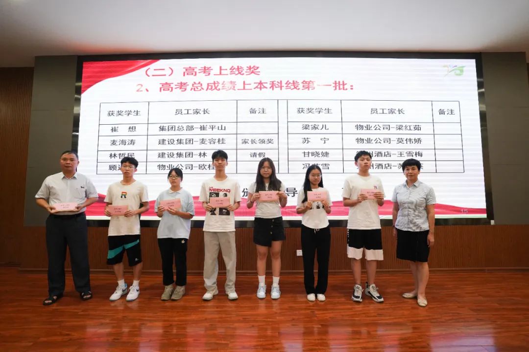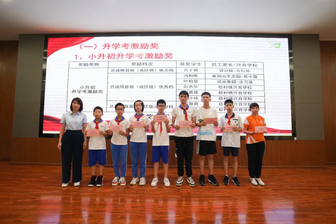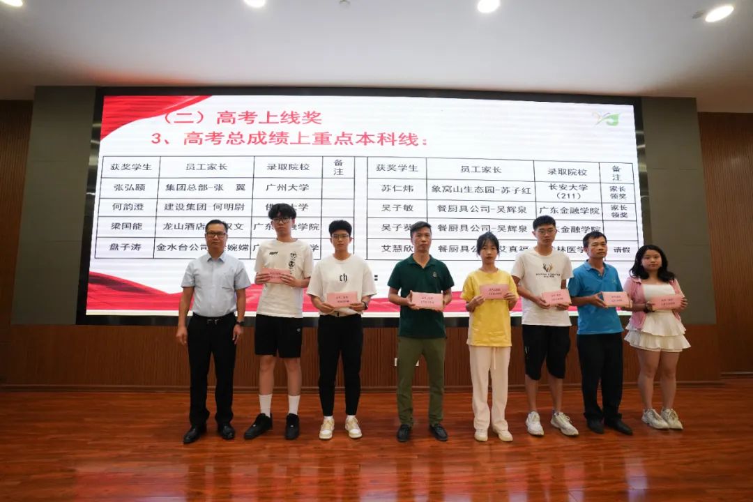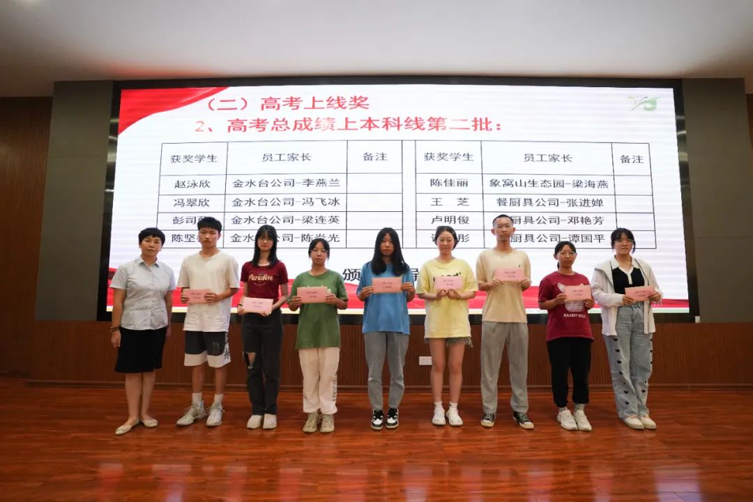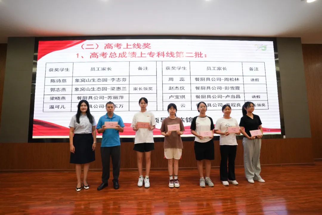 奖学活动上,陈锦嫦公布了员工子女在小升初、中考、高考等升学考试中取得优异成绩的学生名单,集团高层领导分别为学子们颁发奖学金。