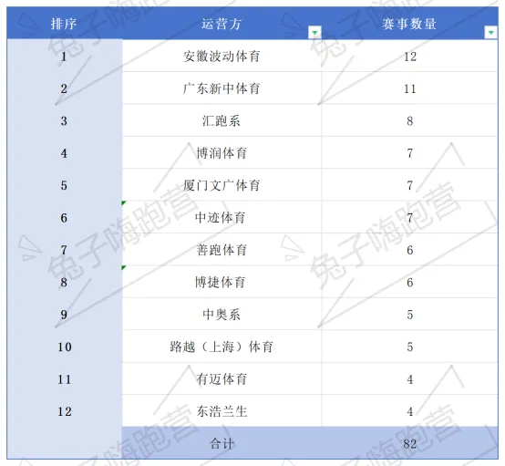 2.运营商数量收缩,区域黑马逆势突围:2025年马拉松运营商总数进一步下降,头部12家运营公司合计运营82场A级赛事,占比约30%;其余155家中小运营公司合计运营193场赛事,虽数量众多但单家规模有限。相较于整体马拉松运营公司规模2023年的323家、2024年预估的250-300家,行业整合速度正在加快。值得关注的是,安徽波动体育以12场A级赛事运营量登顶,作为仅两名自然人股东的企业,其凭借本地化服务能力与高效政府协同,超越多家国字号背景公司成为行业黑马,印证了区域深耕的竞争价值。