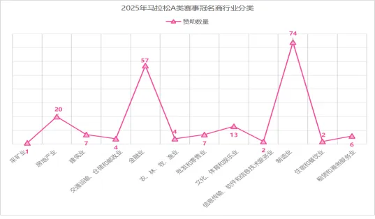1. 冠名权资源稀缺,品类集中度高:赛事赞助呈典型金字塔结构,冠名权为核心稀缺资源,费用随赛事层级差异显著——县级中小型赛事冠名费多为50万-100万元,地级市赛事达300万-500万元,头部一线城市赛事可突破千万元,仅北京、无锡、上海、厦门等顶级赛事能实现千万元级整体赞助。2025年275场样本赛事中,192场拥有冠名商(合计197个,含部分双冠名赛事),占比70.2%,未获冠名的赛事多因报价与品牌支付能力存在鸿沟。品类分布上,银行类品牌稳居冠名主力,乳制品、运动服饰紧随其后,高科技通信、电子设备及汽车制造构成核心补充;而此前活跃的房地产品牌,受行业低迷影响已退出主力赞助阵营。