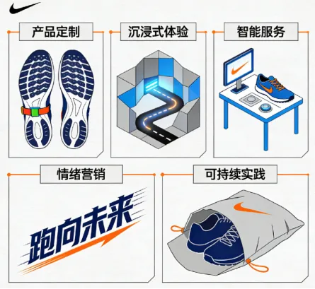 1. 国际品牌深耕专业圈层,全周期运营强化体验:国际品牌与本土品牌分庭抗礼,耐克、阿迪达斯等聚焦头部赛事与顶级运动员,深耕专业跑者圈层。以耐克赞助上海马拉松为例,其创新覆盖产品、服务、营销、科技与可持续五大维度:产品端推出基普乔格联名EK系列跑鞋及上马专属定制装备;体验端打造“上马赛道试炼”体博会空间,还原赛事节点;服务端升级NRC训练营,联合上海体大设立跑步实验室,并通过KEEP的NRC Coach AI提供个性化训练计划;营销端以“神反转”赛道标语与地铁“能量通道”强化城市共鸣;可持续端通过旧鞋回收、环保跑道建设践行社会责任,实现全周期价值渗透。
